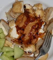 6. Saus kacang : campur kacang tanah goreng yang telah dihaluskan atau pindakaas/selai kacang dengan cabai merah goreng yang telah dihaluskan, gula pasir, cuka, garam dan air.